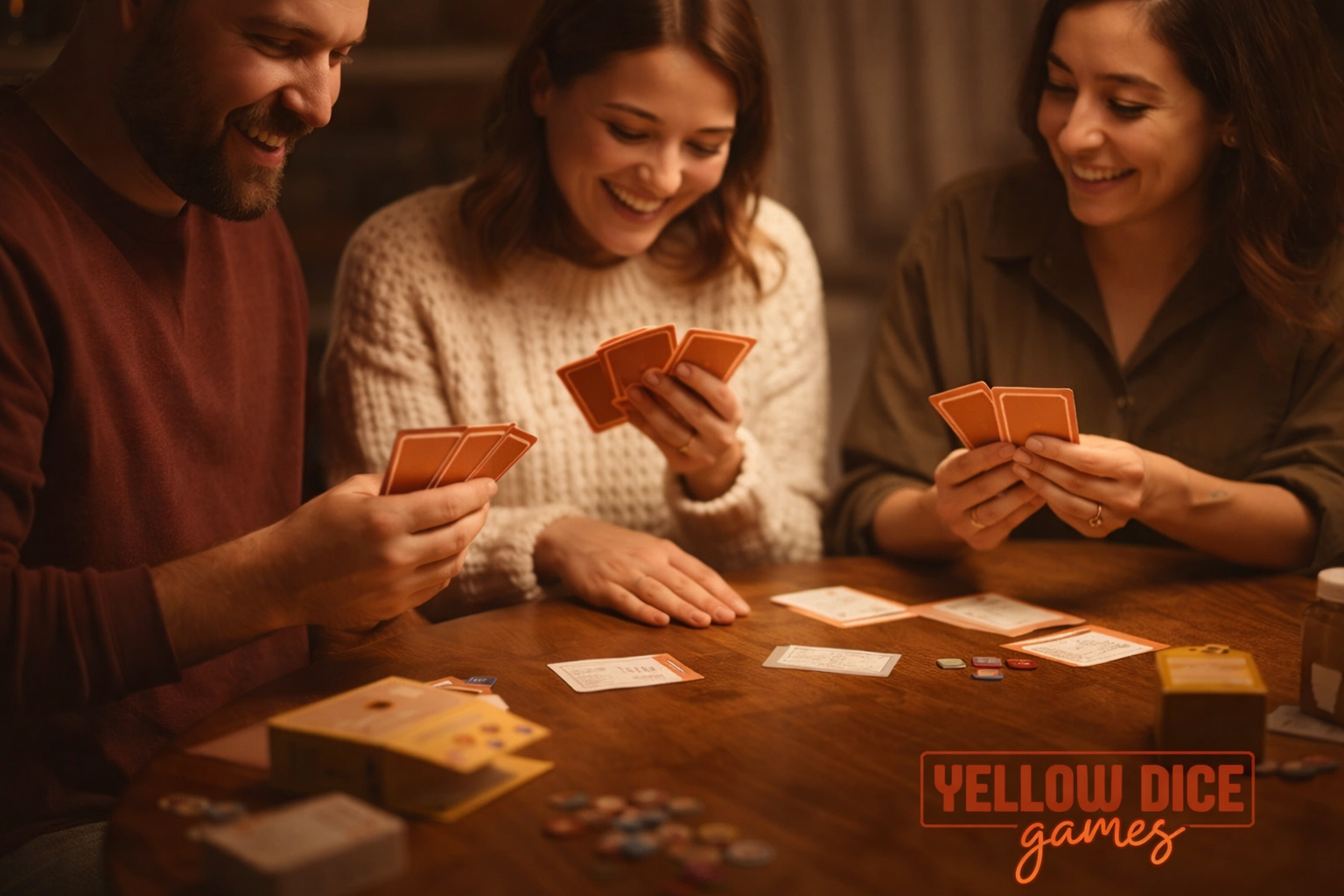 Yellow Dice Games creates thoughtfully designed card and board games that bring people back to the table — to laugh, connect, and actually enjoy each other’s company.