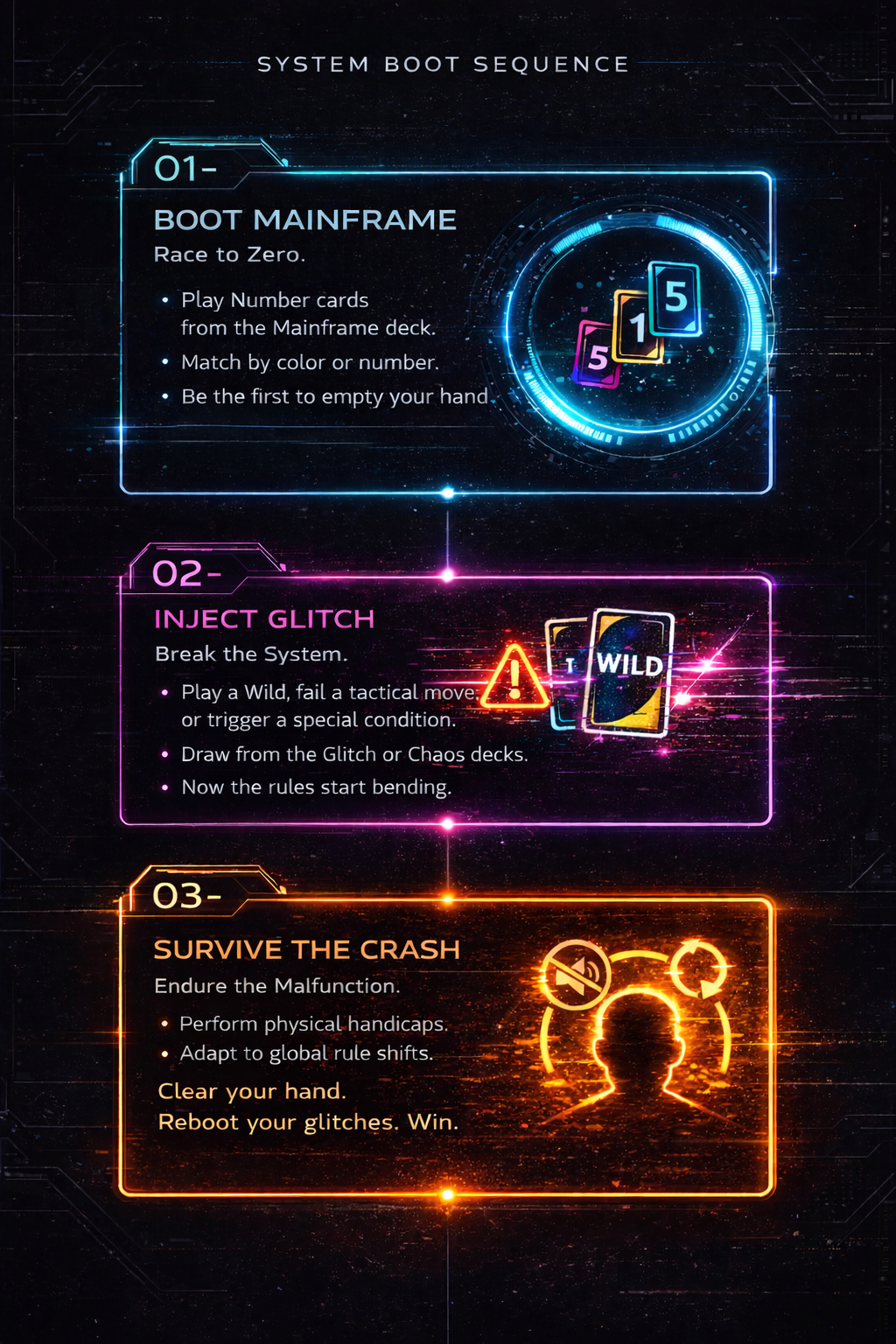 Your tactical toolkit of Number and Action cards. Race to zero or force a reboot.